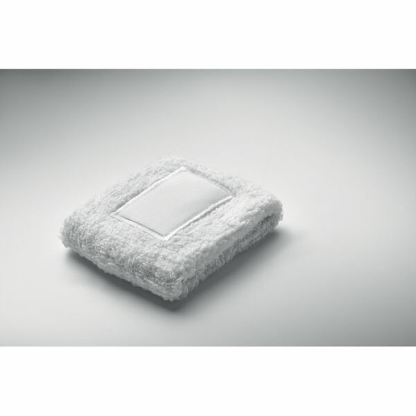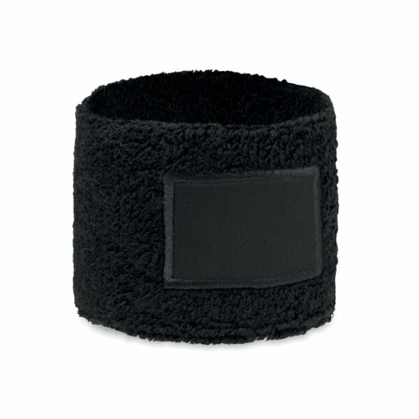 Polsbandje van polykatoen (79%katoen/13% elastaan/8% polyester) met katoenen patch voor de bedrukking.